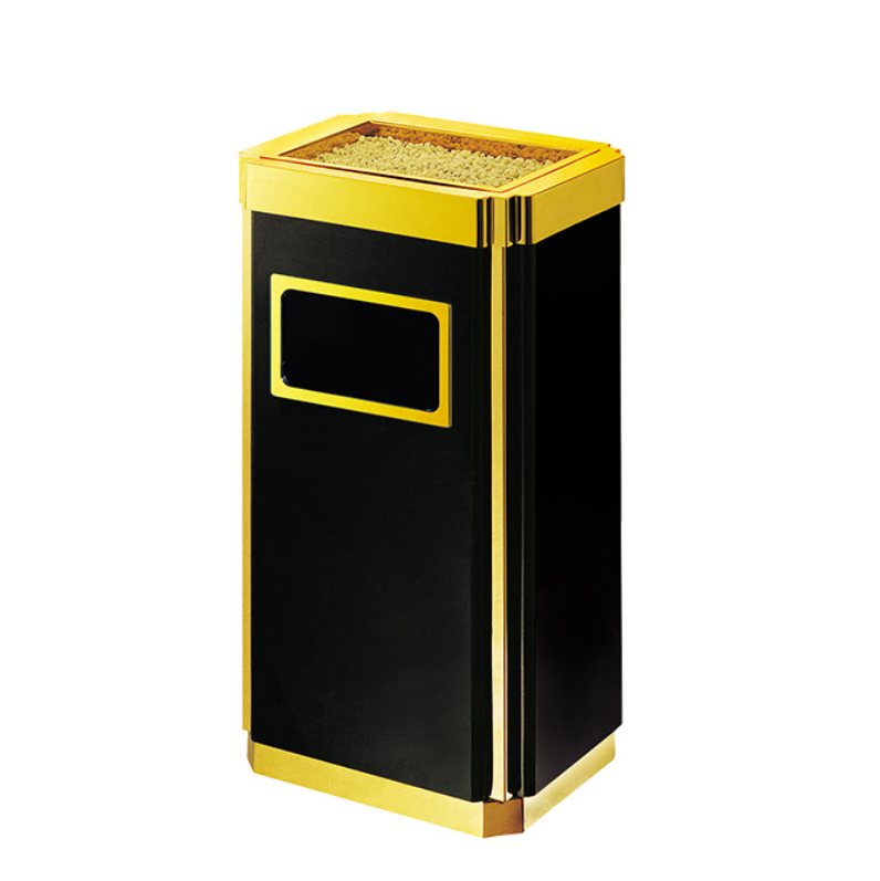 Thùng rác giả da nâu viền inox mạ vàng có gạt tàn